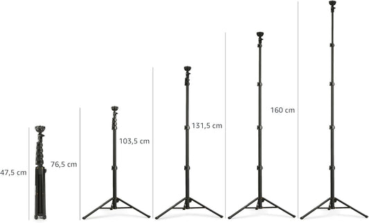Trépied Pour Iphones Extensible Jusqu’À 162 Cm Avec Fonctions Perche À Selfie Et Trépied, Noir