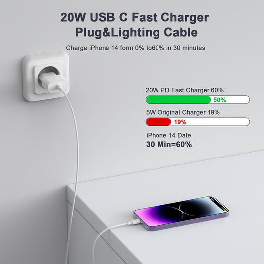 Chargeur Rapide Iphone 11 12 13 14,4Pack [Certifié Apple Mfi ] Chargeur De 20W Adaptateur Avec 2M USB-C De Données Lightning Cordon De Charge Compatible Avec Iphone 14 13 12 11 Pro Max XS XR X