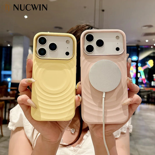 Pour Magsafe Coque en Silicone Liquide pour iPhone 17 Pro Max 15 16 Pro Max 17 Air Ripple Water Microfibre Doublure Magnétique
